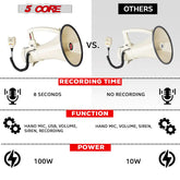 5Core Megaphone Bullhorn Speaker 100W Professional Bull Horn Battery Power Megafono 2000Yard Range